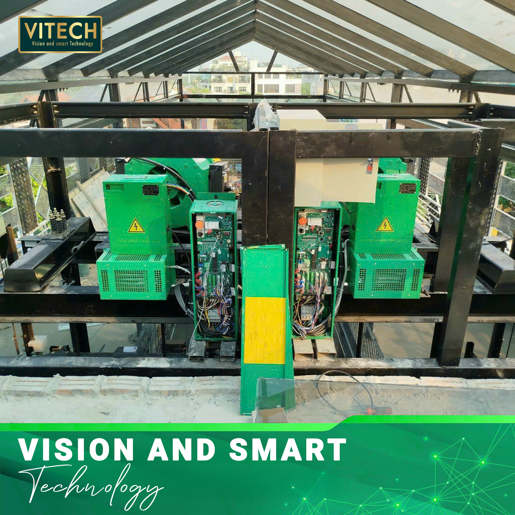 Hệ thông thang máy sửa động cáp kéo đồng bộ máy kéo và tủ điều khiển nhà VITECH